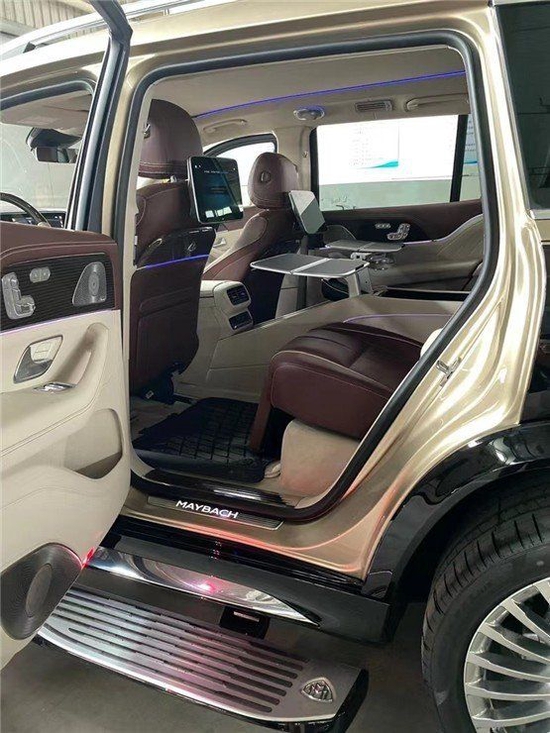 迈巴赫GLS600方向盘、中控台等处都使用了实木、真皮等材质,触感、观感都无可挑剔。同时,新车还配备了该车型专属的64色氛围灯、名为“NO.8 mood”香氛系统和Burmester品高端3D环绕音响系统。