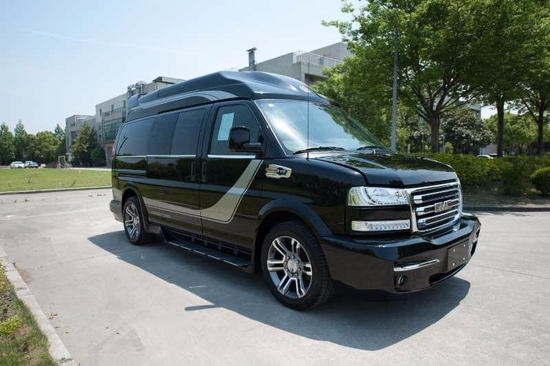 GMC商务之星GX777尊翔星际版全新前后大包围,大量采用镀铬饰件装饰,三条式进气格栅,运动型排气尾管,俨然成了一辆英气逼人的陆上星际航母。