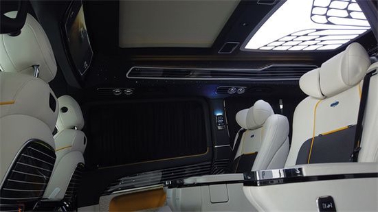 2020款奔驰V260L改装车将乘客舱与驾驶舱完美隔开,驾驶室与乘客舱隔断带升降一键式超静音32寸高清液晶升降电视、网络终端接口、BSB、VGA多功能连接口。电脑主机,触摸屏,秘书/总裁座椅对做规划,BOSE5.1立体盘绕音响,25升冰箱,进口航空座椅等奢华配备一应俱全。