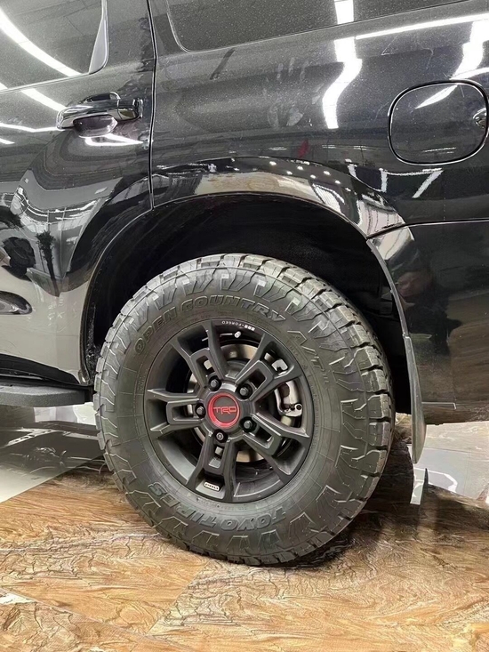 2023防弹丰田红杉包括蜂窝网状设计以及熏黑波浪形并搭配了“TOYOTA”标识的进气格栅造型。另外,车头上的雾灯组都设计在下方护板上,点亮后有很高的辨识度。全新红杉车身侧面的设计感和力量感相比老款也更加明显,车身上的腰线在前门处断开并向内凹陷,