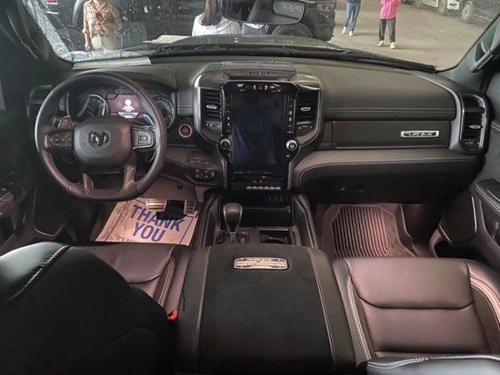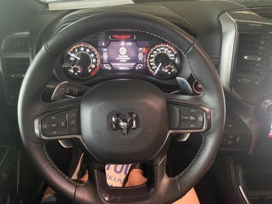 2022款道奇公羊霸王龙内饰部分进一步强化了其高性能版本的形象,中控台和座椅随处可见的TRX标识便是最好的例证。同时,作为道奇家族的旗舰车型,新车还配备了12英寸竖置中控屏幕,除了支持蓝牙、导航和车载Wi-Fi等常见功能,还支持Apple CarPlay和Android Auto手机映射。