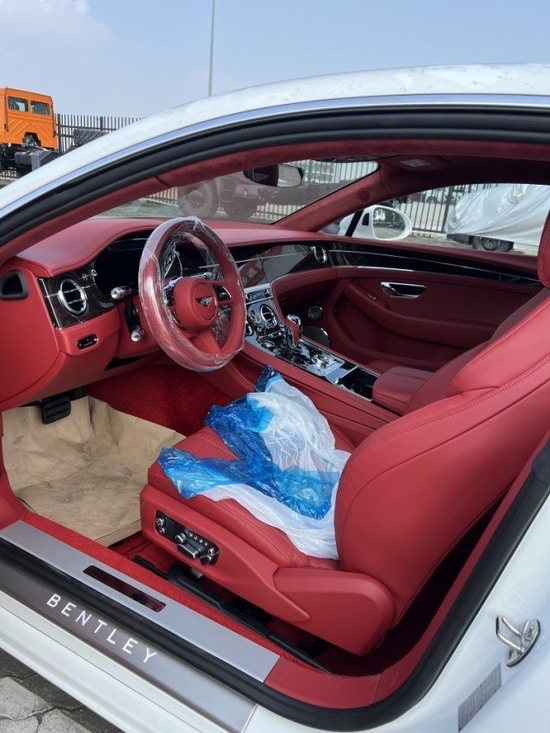 2022款宾利欧陆GT 4.0 V8 欧规 冰川白/热刺红/深胡桃木。