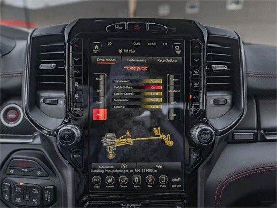 22款道公羊奇霸王龙中控台和座椅随处可见的TRX标识便是最好的例证。同时,作为道奇家族的旗舰车型,新车还配备了12英寸竖置中控屏幕,除了支持蓝牙、导航和车载Wi-Fi等常见功能,还支持Apple CarPlay和Android Auto手机映射。