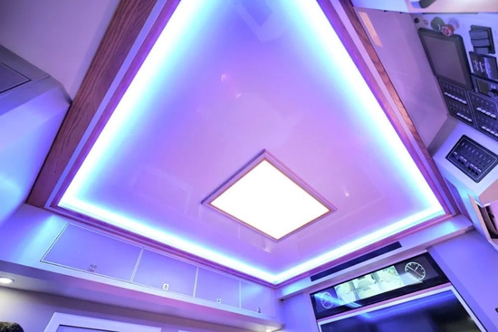 生活区照明系统设有方形主顶灯、隐藏氛围灯条、LED射灯、阅读灯,柔和的灯光,营造温馨舒适的旅居氛围。