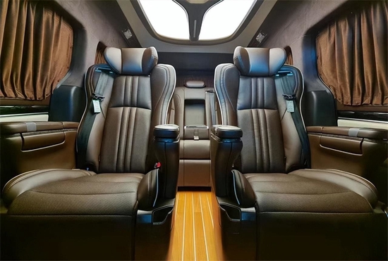 全车采用大量超纤真皮包覆,半隔断互联网电视,加上全车8声道的音箱,带来了很好的视听感受。地板采用大理石纹设计,美观大气,且易打理。中排的采用的是埃尔法同款的航空头等舱座椅,功能十分强大,通风,加热,按摩旋转等等应有尽有,这种埃尔法座椅的尺寸比之普通的航空座椅也要宽一点,舒适度更高,坐起来更舒适。