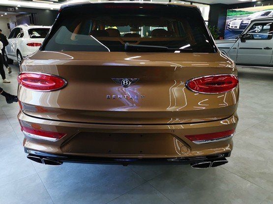 21款宾利添越车尾部分,新款添越使用了宾利最新家族式的尾部设计,整体看上去十分简洁、椭圆形尾灯犹如两颗珠宝,十分璀璨。 双边共四出的排气,标志着新款宾利添越依然有着十分强悍的性能。