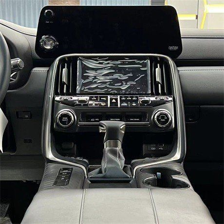 22款雷克萨斯LX600内饰上的变化,首先内饰用料得到了优化升级、并首次加入了双触屏设计,位于上方的12.3英寸屏幕负责显示音频、导航等信息。下方的7英寸屏幕主要负责控制空调系统,但也可选择显示越野参数等信息。