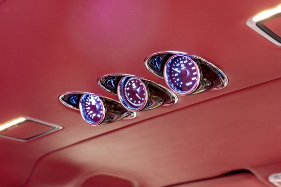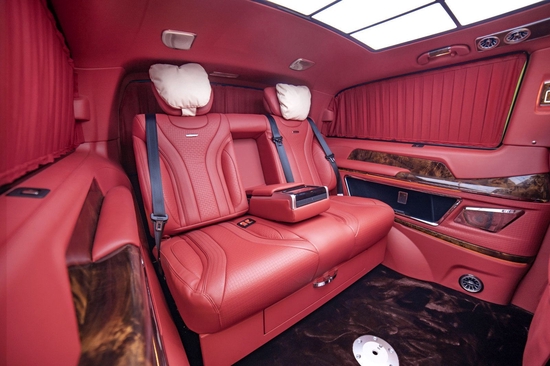乘客舱的顶灯采用迈巴赫圆弧形顶灯设计(石英水晶材质:耐高温、普通玻璃10000倍的电绝缘性、极佳的热温性与透光性)。顶棚镶嵌式控制台总成与定制三眼马祖表的搭配相得益彰。