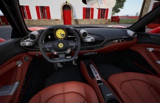 F8 Tributo采用与812 Superfast同款的方向盘,方向盘上集成了一键启动、驾驶模式调节、悬挂调节、语音控制等功能。巨大的换挡拨片会让人迫不及待地去按下启动按钮。