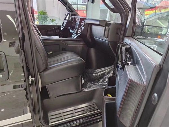 车子是新款4时低顶,带有新款前后大包围雾灯,LED车侧边礼宾灯。整车长度5米7,宽度2米09,高度2米20,轴距3429。6.0的大排量。汽油的发动机,6速手自一体变速箱带有定速巡航。