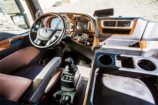 重汽汕德卡改装越野房车就是这样的一辆车。第一眼看到它,感觉就是高,太高了。甚至在驾驶室的边上都布置了爬梯,才能爬到驾驶室顶取下备胎。这辆车的使用了重汽底盘德国曼发动机技术,搭载了一台6.8L排量的柴油发动机,最大功率350马力,最大扭矩1050牛米,满足国六排放标准。重汽汕斯特改装越野房车车身尺寸为5973*2480*3660mm,轴距为3300mm,轴距是3600mm,轮胎使用的是米其林385/65R22.5越野轮胎,具备中央充放气系统。整备质量为7580/7140kg,最大质量为93900kg。全车额定载客人数为3人。因为车长不超过6米。