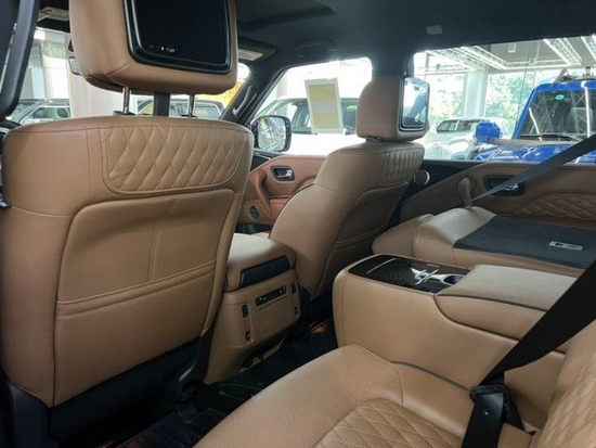 在车辆的内饰方面,这款全新的英菲尼迪qx80,则体现出了更强的豪华感,该车采用了最新样式的菱形,棕色真皮缝制工艺,并且使用了我们都很熟悉的全新要是大尺寸悬浮式中控屏以及最新的多层次中控台,而且该车还会配备最新样式的真皮座椅和后排独立的多媒体影音系统等车载配置以及豪华程度方面可以说丝毫不输我们熟悉的雷克萨斯lx (配置|询价)。