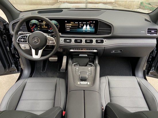 奔驰GLS450采用的是贯穿式中控台双屏设计,12.3英寸的双液晶显示屏以及中央四出空调出风口的加入,让车内除了一贯的豪华外,带来更多科技氛围。三幅式平底方向盘动感十足,头顶一个全景天窗提供车内采光,带来舒适的驾驶体验。全景影像和抬显显示效果清晰,方便驾驶者的安全驾驶