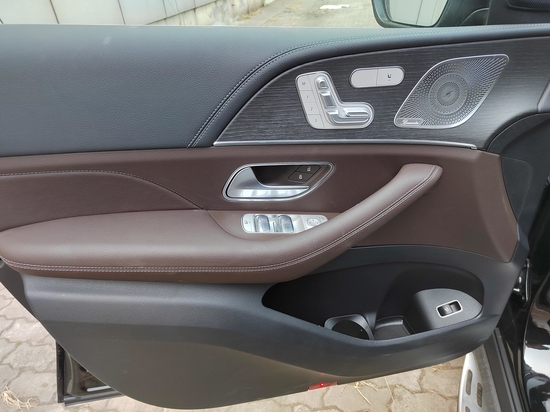 加版2022款奔驰GLE450车门饰板的现代设计突出了车辆的运动、优雅特性,车门装饰延续了仪表板的整体效果,凸显了内饰的优雅。