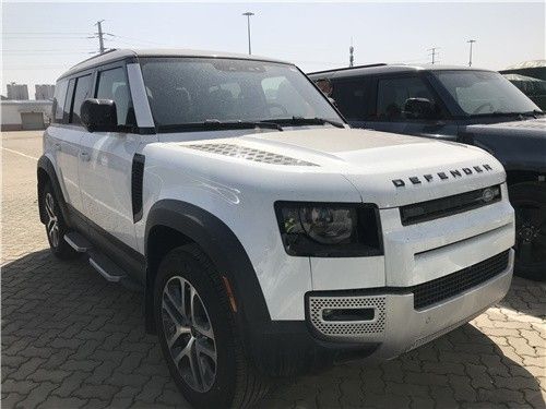 20款路虎全新卫士新车车头依旧使用了方方正正的设计元素,方形前灯组内有半圆形光源,前进气格栅的造型设计十分简洁并带有经典的“LAND ROVER”绿色logo,前机盖边缘的“DEFENDER”车型标识也得到了保留。前保险杠下部带有大面积的银色护板,整个前脸的层次感分明,也显得非常厚重。