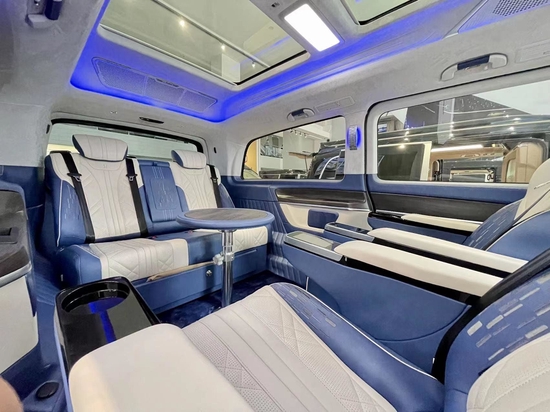 众所周知,座椅是商务车的灵魂之一。因此二排选用航空座椅,具备通风、加热、按摩、前后移动、靠背高低调节,腿托抬高调节、180度旋转等功能,均可通过座椅侧边的触控屏操作,不仅舒适度提高也更具人性化。内饰不仅保留了西方流线型美感的基本格调又恰如其分地满足了东方审美的对称性需求。