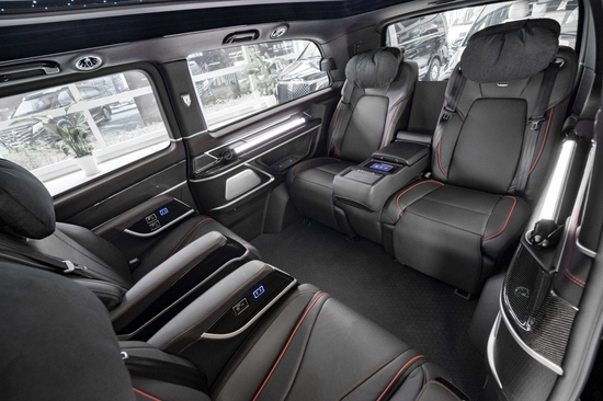 奔驰V260在内部装潢上也进行升级,车体头层小牛皮真皮包覆、Alcantara以及实木和碳纤维多种材质可供选择。