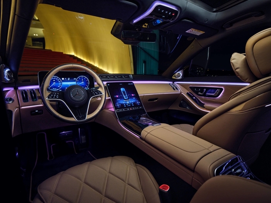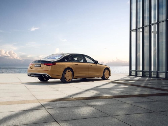 梅赛德斯-迈巴赫S 680 Virgil Abloh限量版设计灵感来源于奔驰首席设计官Gorden Wagener与艺术家Virgil Abloh共同创造的Project MAYBACH概念车,其车身外观采用专为Project MAYBACH设计的专属双色车漆,车身上部采用曜岩黑高光漆面,车身下部采用风岩沙色漆面并搭配专属沙色锻造轮毂,整体造型奢华尊贵。