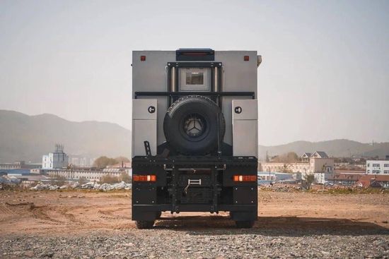 车身外部配置了前后绞盘(前12000磅,后20000磅)、房车专用3.5米电动遮阳棚、重力注水口、外置淋浴器、发电机、电动液压五级踏步、多机位摄像头、侧爬梯、车头行李架、越野探照灯等设施,满足旅行时在不同场景下的使用需求;