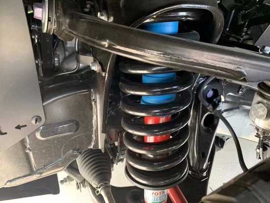 2022款坦途TRD 越野采用了全新的18英寸BBS铝合金轮毂,从车轮上卸掉了13.4磅的重量,轮胎选用P275/65R18的米其林LTX A/T2全地形轮胎。此前的TRD-branded Bilstein减震器被直径为2.5英寸的Fox Racing Shocks减震器取代,悬挂行程较普通坦途多出了2英寸,车轮行程增加了1.5英寸。实际上来说,2022款坦途TRD 越野版在越野时不容易托底。