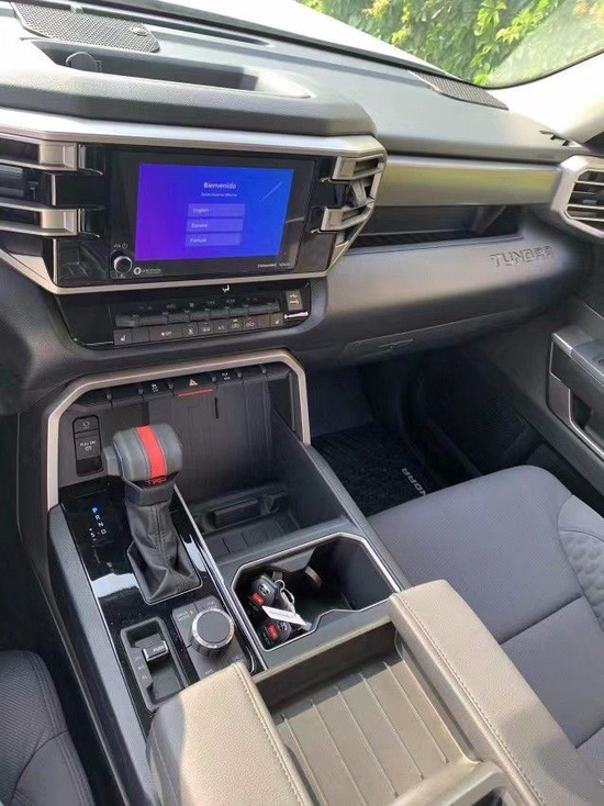 内饰上,2022款坦途TRD 越野版与此前亮相的Tacoma TRD 越野版保持风格上的一致。脚垫、头枕和控制台扶手以及旋钮上都点缀有“TRD”logo。依旧是宽大的中控台搭配各种大尺寸按键、旋钮的组合,配色方面采用深灰色与浅灰色搭配为主,可以很清楚的发现驾驶员一侧的色调以浅色调为主,作为一款皮卡,坦途内饰的用料和做工明显有过于“豪放”之嫌,中控台大面积的硬塑料材质说明它还是一款实用性至上的车型。