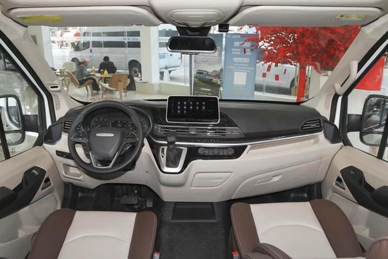 驾驶舱依旧采用原厂房车专有的无钥匙进入及一键启动(带2把智能钥匙,可遥控开关主副驾驶门、房车乘客门);行驻车方面,有Autohold驻车自动保持、EPB电子驻车制动、前雷达+倒车雷达、真皮多功能方向盘、电动助力转向、三模驾驶模式、自动前雨刮、电动电加热外后视镜、发动机电子芯片防盗系统、盲区监测(带下车提醒)+变道辅助、驾驶舱10.25吋高清触控大屏、智能遥控主副驾车窗(雨天自动关窗、远程关闭车窗、夏天模式)、TPMS胎压监测(选装后双胎,只有前轮具备)、主副驾安全气囊等辅助驾驶。动力方面,搭载上汽π2.0T高性能柴油发动机(符合国六b排放标准),最大功率110kW,峰值扭矩375N.m,并匹配法国邦奇6AT变速箱方便驾驶操作;此外,新车还采用了NVH静音技术,可有效减少行车时的噪音。