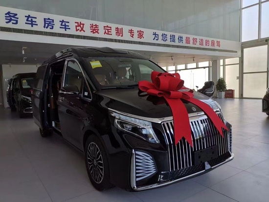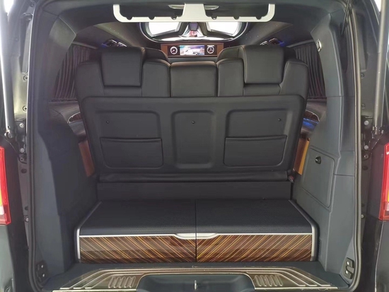 2022款奔驰V260L改装商务车第二排航空座椅为带电动、加热、按摩、通风功能的航空级首长席,可沿着地面上滑轨实现一键电动式前后滑动,对于这种智能化的乘坐体验,是原厂车型笨拙的手动拖拽模式所望尘莫及的。车内的氛围灯打开后,奔驰V260内舱变得灵活多变,气氛也可以根据主灯颜色变换而变化,主要的乘坐座椅配置的独立的按摩功能,通风加热,一体腿托,功能丰富,乘坐舒适,是商务接待用车的代步良品