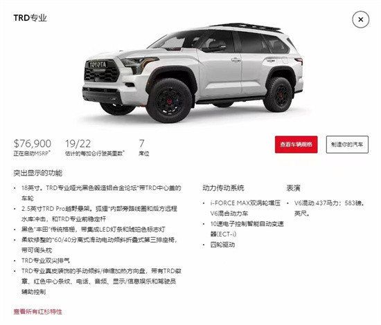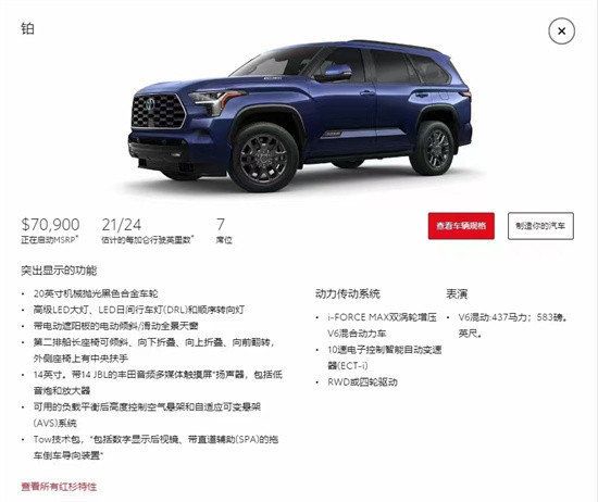 23款丰田红杉 搭载最新i-Force Max混动系统、3.5 TV6双涡轮增压,最大功率为450马力、最大扭矩为790牛·米,在传动上,与之匹配10速自动变速箱。同时,还配备了高配版和低配版两种不同配置,其中高配版采用了全新四缸直列六气门技术,低配版则为五门三厢设计;燃油经济性方面。
