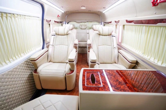 车内空间利用非常充分,配有上下两张双人床铺,通过搭建驾驶室上方的床板可以形成一张床铺,通过折叠沙发座椅,铺上软垫又形成另外一张双人床铺,驻车时车内可供四人同时休息。丰田海狮大多数是作为接待用车,因此海狮受到很多企业的青睐。既然是企业接待专用车,内饰方面是不能过于简陋,接待车的内饰是展现了企业的体面。