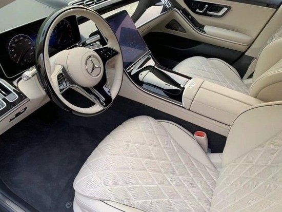 奔驰S580采用了三幅式的全新造型的方向盘,新车的中控台上采用了钢琴烤漆面板装饰,上面采用了多条横向的白色装饰条点缀。采用了悬浮式的纵置大屏,液晶仪表采用了悬浮式的风格。第二排座椅,新车的第二排采用了两个独立的豪华座椅,中间配备了独立的多媒体系统,新车的后排配备了无线充电、冰箱,后方的地台上采用了钢琴烤漆的面板。新车的后排座椅非常豪华,上面采用了菱形的纹路,门板上也采用了非常精致的设计。