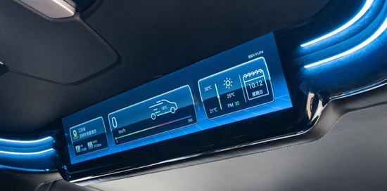 进口罗伦士天舟环境感知:中排前方配置智能动态环境显示系统,睡醒睁眼瞬间,当前所处位置、车速、天气状况、空气质量,抬头可见,贴心守护乘客的出行