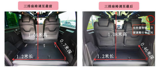 进口罗伦士天舟三排宽敞乘坐空间:二排座椅调至最后,三排座椅调至最前,身高1.78米的乘客乘坐空间依旧富余。二排座椅调至最后,三排座椅调至最后,身高1.78米的乘客乘坐空间非常宽敞,有1臂间距