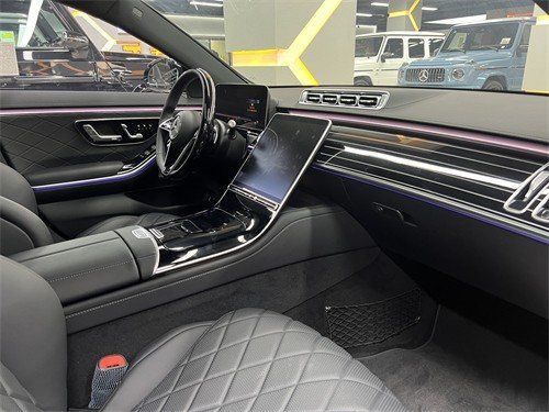 奔驰S580内饰中控台垂瀑式中央触控屏从中控台纵向延伸,凸显出了简约的设计感。整个内饰的豪华感当然是无须质疑,触手可及之处几乎全用上了皮革包裹,配合带263个LED单元的动态氛围灯进一步升华了内饰氛围感。AMG Line的方向盘通过对造型的重新雕塑,变得更加立体
