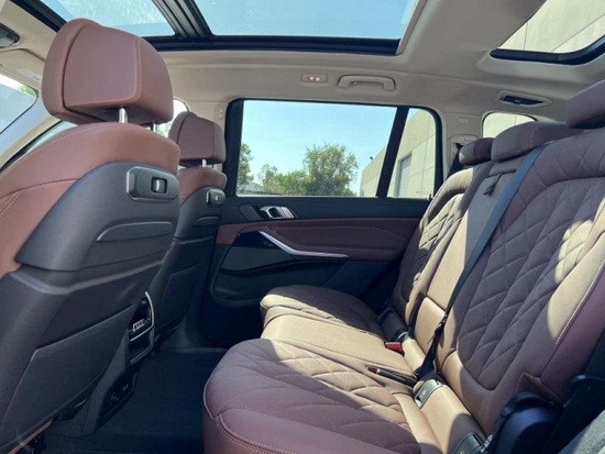 全新一代23款宝马X7在将第二排的腿部空间调整至两拳后,第三排可以获得一拳的腿部空间,虽然头部空间比较有限,不能与MPV车型相提并论,但是宝马X7的第三排也并不像一般SUV车型那样会有一种压抑感,客观地说,宝马X7的整个座舱空间还是相当宽敞。并且车内第五区的空调就是为第三排乘客服务的,座椅两侧还各有一个Type-C接口,给第三排的乘客带来更多的方便。