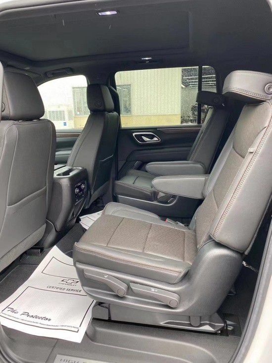 2022款雪佛兰萨博班外观造型设计还是以方正风格为主,车头横纹镀铬进气格栅气场不输凯迪拉克凯雷德,两侧更狭长的LED矩阵大灯光源很犀利,搭配小獠牙日行灯装饰,车头侵略感比较强。车身侧面属于很明显的全尺寸SUV身材,新一代产品比老款车型轴距增加了105mm,C柱后方超大面积侧窗与凯雷德如出一辙,搭配隔音隐私玻璃和平坦的车顶行李架,沉稳的气场很突出。