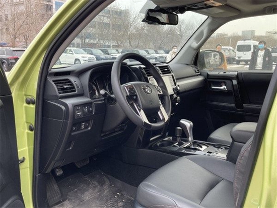 配置:后桥差速锁,无钥匙进入,一键启动,8寸中控大屏,苹果carplay,ACC自适应巡航,车道偏离预警,摇启,丰田最经典KDSS电子控制动力调节悬挂系统,高原进气补偿,专业越野踏板。亮点配置:10气囊,天窗,自动空调,自动大灯,远程遥启,碳纤维内饰面板,车道偏离预警,ACC自适应巡航,液晶仪表盘,蠕行模式,多地形模式,坡道辅助,Trd底盘护板,头枕刺绣,Trd黑色合金轮圈,筐式行李架,手动分时四驱(副挡杆)。标准配置:4.0L V6发动机,五速手自一体变速箱,五座,黑色真皮内饰,主副驾驶电动座椅,前排座椅加热,8寸中控屏幕,倒车影像,胎压检测,电动外加热后视镜,防眩目内后视镜,四门车窗一键升降,后排隐私玻璃,二排座椅角度可调,电动可升降尾窗,底挂备胎,87L油箱,雾灯,厚尾翼,巡航定速,轮毂锁。