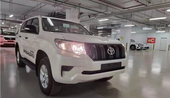 新添22款霸道2700(多台)国六排放标准 白色外观米色内饰, 大铝轮有踏板,黑色后视镜,黑色门把手 普拉多字母彩条 底挂备胎、7座 电折镜、半多功能方向盘 中控大屏。