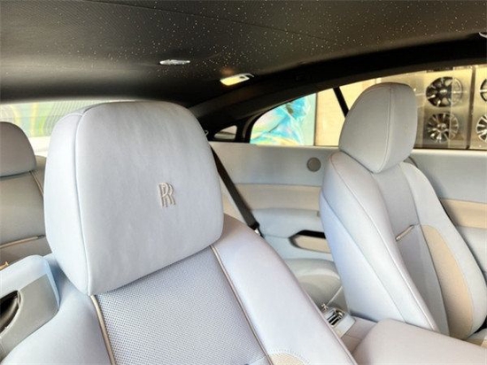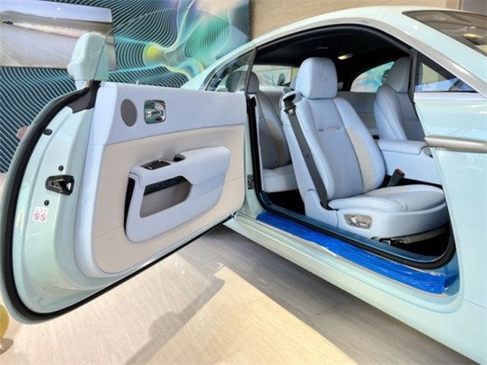 配置:舒适入车系统(连便利行李箱开关系统),前排座椅通风,流星星空顶饰,迎宾踏板刻字-魅影Wraith,座椅滚边-海贝白 Seashell,对比缝线-海贝白 Seashell,驾驶者辅助系统1(车道偏离警示/远灯自动辅助功能/抬头平视器),RR头枕刺绣-海贝白Seashel,颜色方向盘-黑色Black/海贝白Seashell,Bespoke定制内饰方案,特殊付费定制外漆-嵯峨绿Sagano Green,21寸十幅部分抛光轮毂。
