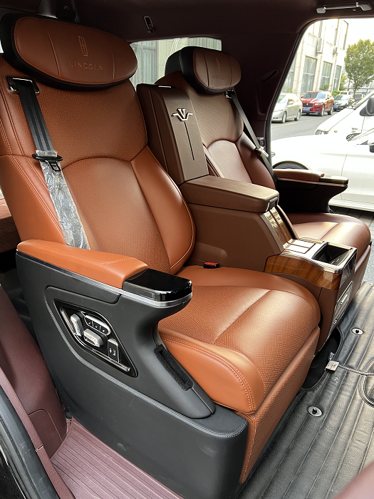林肯领航员改装航空座椅后会提升舒适度,座椅内部海绵更加富有弹力,外层真皮更加柔软,适合长时间乘坐,并且具备按摩、加热、通风、手机充电、电动腿托、电动靠背角度调节,等强大的航空座椅级功能。SUV车型 座椅改装专业技术厂家成熟改装方案,无损改装更加合理。SUV航空座椅内部材质为钢架结构及航空座椅棉,外部材质为纳帕真皮,乘坐舒适,功能齐全。一般越野车SUV车型改装过航空座椅后空间都会有所增加,座椅靠背角度可以调节,带有电动腿托,所以改装航空座椅后更加舒适。