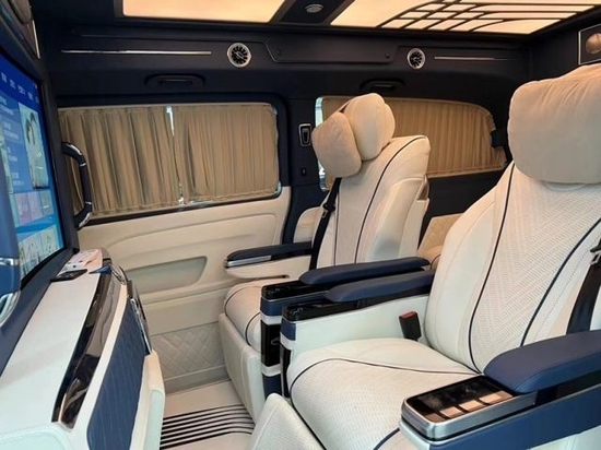 22款奔驰威霆商务车高顶七座舒适的座椅让开车会减少驾驶疲劳,而新颖漂亮功能齐全的航空座椅样式、不拘一格的内饰结构、配备的电器齐全,能保持愉悦的心情和随心的工作或交谈,所以现在改装座椅已经成为了一种趋势。商务车航空座椅功能:座椅电动前后、靠背电动调节、电动腿托、360度手动/电动旋转、固定/活动扶手、座椅通风加热。