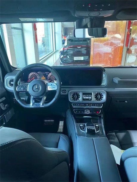 22款奔驰G63中控台上的按钮比较的多,由此可见他的配置非常的丰富;中控台多处均采用碳纤维材料覆盖,彰显出了无与伦比的高贵气质。内饰最大亮点是全液晶仪表与中控屏组成的双12.3英寸超大连屏,其中液晶仪表可显示三组不同界面,而根据配置的不同,部分车型将配备传统机械式仪表。
