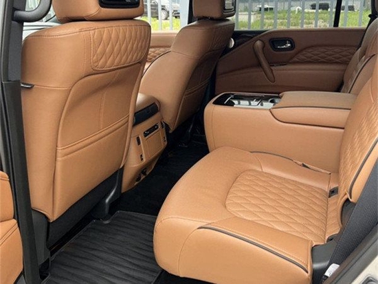2022款英菲尼迪QX80新车的侧面线条,显着比较高大,威猛,非常霸气,车身还提供大量镀铬装饰件,比较时尚,大尺寸轮毂也是比较运动,显眼,符合车辆的气质,尾部的造型依然比较高大,饱满,尾灯跟大灯产生呼应,排气为隐藏式设计。