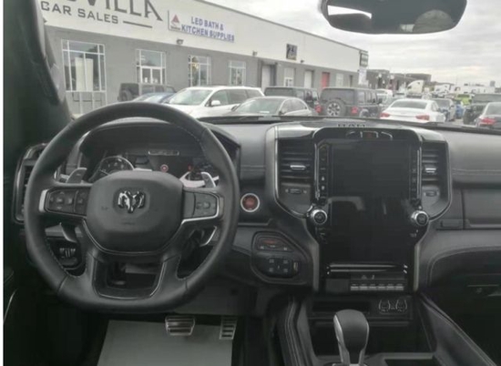 22款全新道奇公羊霸王龙内饰部分进一步强化了其高性能版本的形象,中控台和座椅随处可见的TRX标识便是最好的例证。同时,作为道奇Ram家族的旗舰车型,新车还配备了12英寸竖置中控屏幕,除了支持蓝牙、导航和车载Wi-Fi等常见功能,还支持Apple CarPlay和Android Auto手机映射。