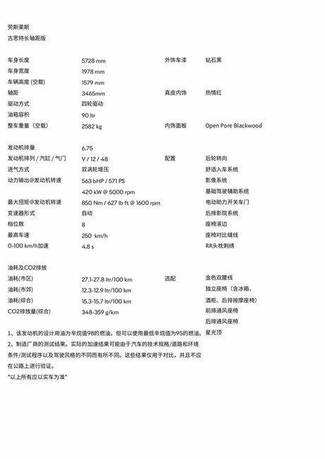劳斯莱斯古思特动力方面,新车将继续搭载6.75L双涡轮增压V12发动机,最大功率571马力,峰值扭矩850牛·米。传动方面,将匹采埃孚提供的8速自动变速箱和全时四驱系统,0-100km/h加速仅需4.8秒,最高时速为249km/h。