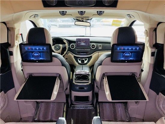 奔驰迈巴赫VS900顶部分采用成本相当高的Alcantara包覆,前部采用全景天窗可一键打开,后部的迈巴赫光纤宫格顶灯,如果说这种豪华的氛围只是感性上的认知,那用理性的决定选择迈巴赫V级就体现在它的个性化功能上。舒适车厢 - 身心享受,尊贵独有。