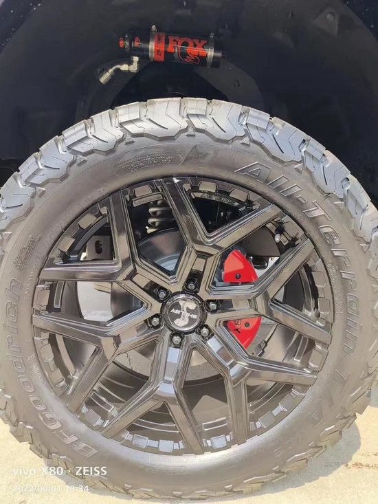 谢尔比还针对F-150的悬架进行了升级,新车配备了BDS升降器和Fox 2.5英寸前后铝制避震器,对后牵引杆也进行了升级。根据介绍,悬挂系统有内部旁路技术和可调双速控制器,一切都由专用控制系统进行管理,可根据用车场景进行调整,能够适应日常使用、越野拉力挑战或赛道竞速操控等多种不同场景。