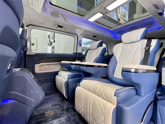 整车基于奔驰V260L车型改装升级,整车具体尺寸为5370*1928*2050mm。前脸采用双条幅加横线式进气格栅搭配的造型设计,保险杠下也点缀有镀铬饰条,大气稳重。全新LED鹰眼大灯气势十足。相比于其他流线型车身,巴赫更注重于实用性,不仅只追求外观上的线性美感,更加追求空间享受和实用性。133-7022-6676