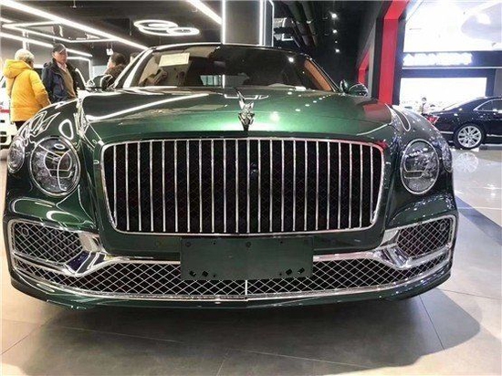 22款宾利飞驰大尺寸的直瀑式镀铬前格栅造型规整,与角度垂直的车头相得益彰。前保险杠下方进气口同样由大量镀铬材质覆盖。