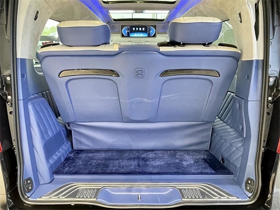 二排选用两张航空座椅,采用爱马仕同款真皮包裹,下沉处理的坐垫让我们有更好的乘坐舒 适性,三档通风,加热,多穴位气动按摩,二段腿托等十二项电动调节让您享受头等舱级别的舒适乘坐感受。地板采用柚木地板上铺星光棉绒地毯搭配金属压边更显品质;音响罩以元素增加节奏变化,使得整车顶部更富设计感及肌理感;内顶立柱灯以乐章元素为外形,雕刻花纹,车内氛围灯及照明灯均设计了亮度明暗调节功能,满足不同用户对照明的需求;两面全景天窗保障车内通透敞亮。半隔断电视搭配音响系统给我们带来极致的试听感受!