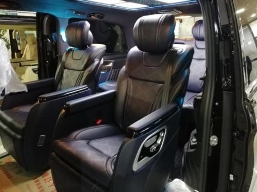 整车座椅采用进口Nappa真皮包裹,电动调节总能让您找到舒适的坐姿,大尺寸触摸屏,配有倒影、后雷达;更有大容量冰箱,安全性,便利性都有保障; 2+2+3座椅排列,也是当前商务车最为流行的设计,二排独立航空座椅,打孔真皮处理更透气,座椅通风、按摩给予您更舒适的乘坐感受,更有360度旋转功能; 无论是照顾孩子、陪家人聊天,亦或是商务洽谈,都能让您随心所欲;此外第三排座椅展开,即可形成一张宽大舒适的沙发床!